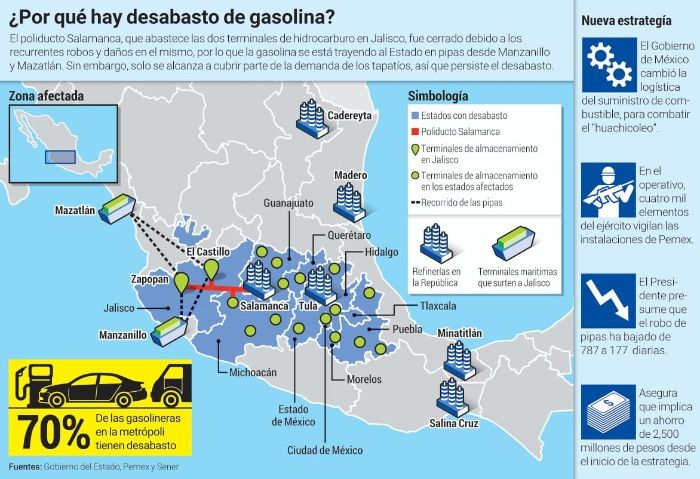 また、PEMEXは10日間のうちに供給安定化を目指しているものの、タンクローリーを利用した供給方法では限界があると指摘されているほか、貯蔵施設に十分なガソリンが供給されるまで1か月はかかるだろうとみられている。