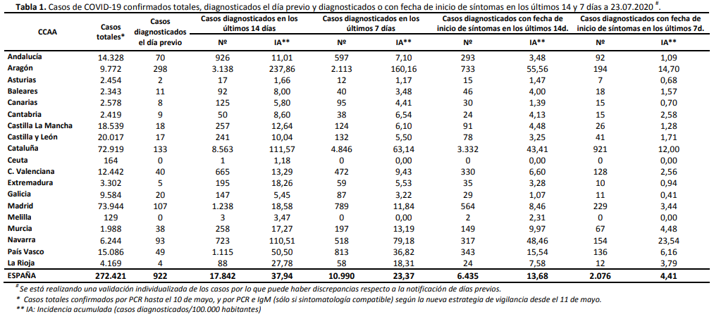 スペインでは24日における中央政府厚生省の発表によると、24時間で922人の新型コロナウイルス感染者を新たに確認。 カタルーニャ州はこの2週間で8,563人の感染者を出しており、スペイン国内でも第2波の懸念が広がっている。