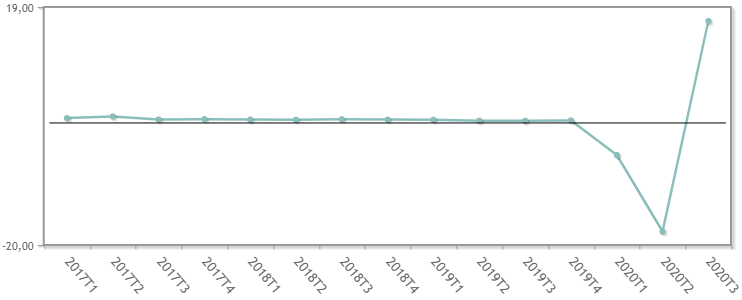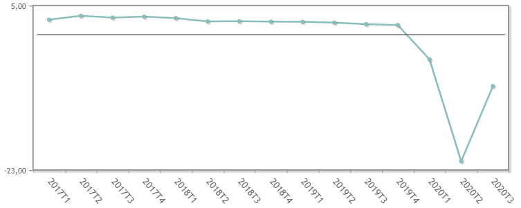 新型コロナウイルス感染拡大抑制政策として警戒体制(警戒事態)が発令した結果、スペインの国内総生産は第一四半期に‐5.2%、第二四半期に-17.8%となっていた。