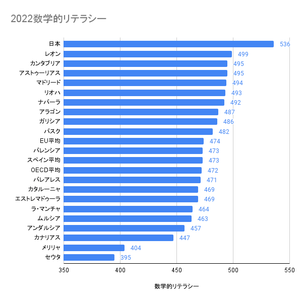 数学的リテラシーに関して、スペインは2018年から8ポイント下げて473点。 2003年に記録したスペインの最低点数480点を下回った。