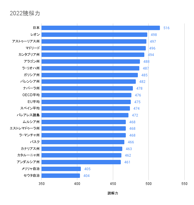 また、読解力ではカタルーニャ州は462点、科学的リテラシーも477点といずれもOECD平均を下回っている。