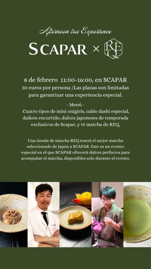 抹茶ショップREQが、日本から厳選された最高の抹茶をSCAPARにお届けします。この特別なイベントでは、SCAPARが抹茶にぴったりのスイーツを提供します。イベント期間中のみのユニークなメニュー!