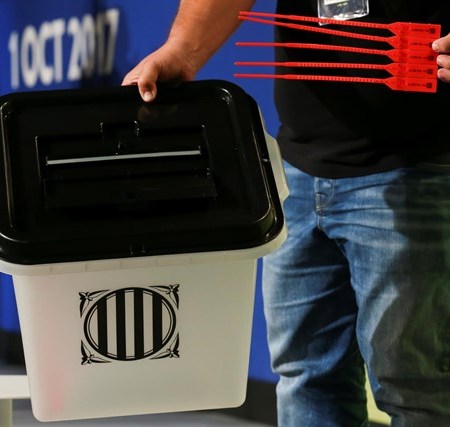 州政府が独立を問う違法な住民投票に使われる投票箱を初公開