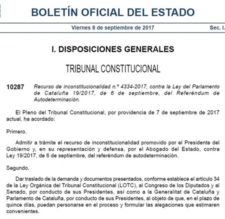 カタルーニャ州の独立を問う住民投票実施の中止命令が政府「官報」として発布される