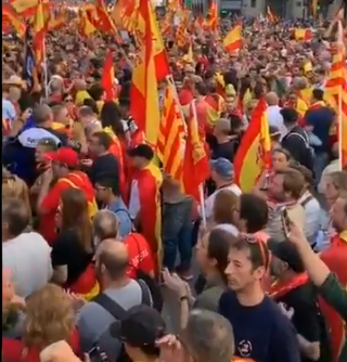カタルーニャ州独立問題 バルセロナ市が抗議デモ35万人が参加(バルセロナ市警察発表) 市内が危険な状況