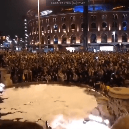 カタルーニャ州独立問題 独立派がバルセロナスペイン広場で抗議集会 約2千人が参加し広場の噴水に洗剤