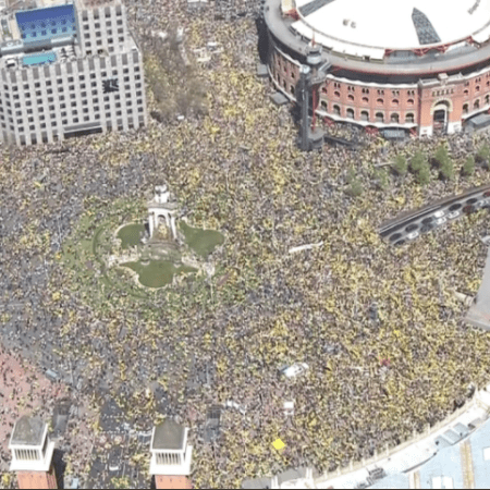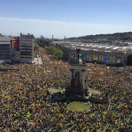 カタルーニャ州独立派政治家らの釈放を求める抗議デモ スペイン広場を埋め尽くす人